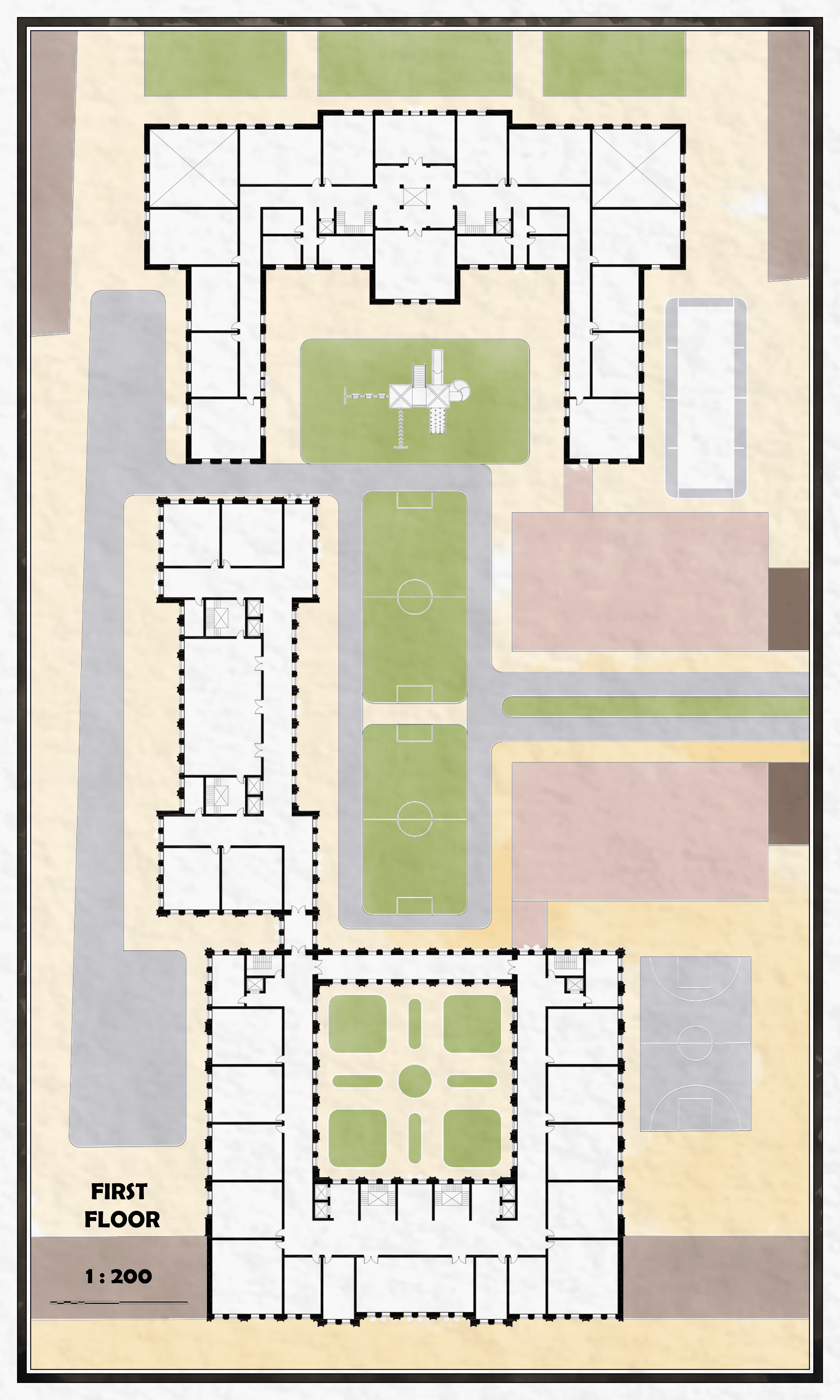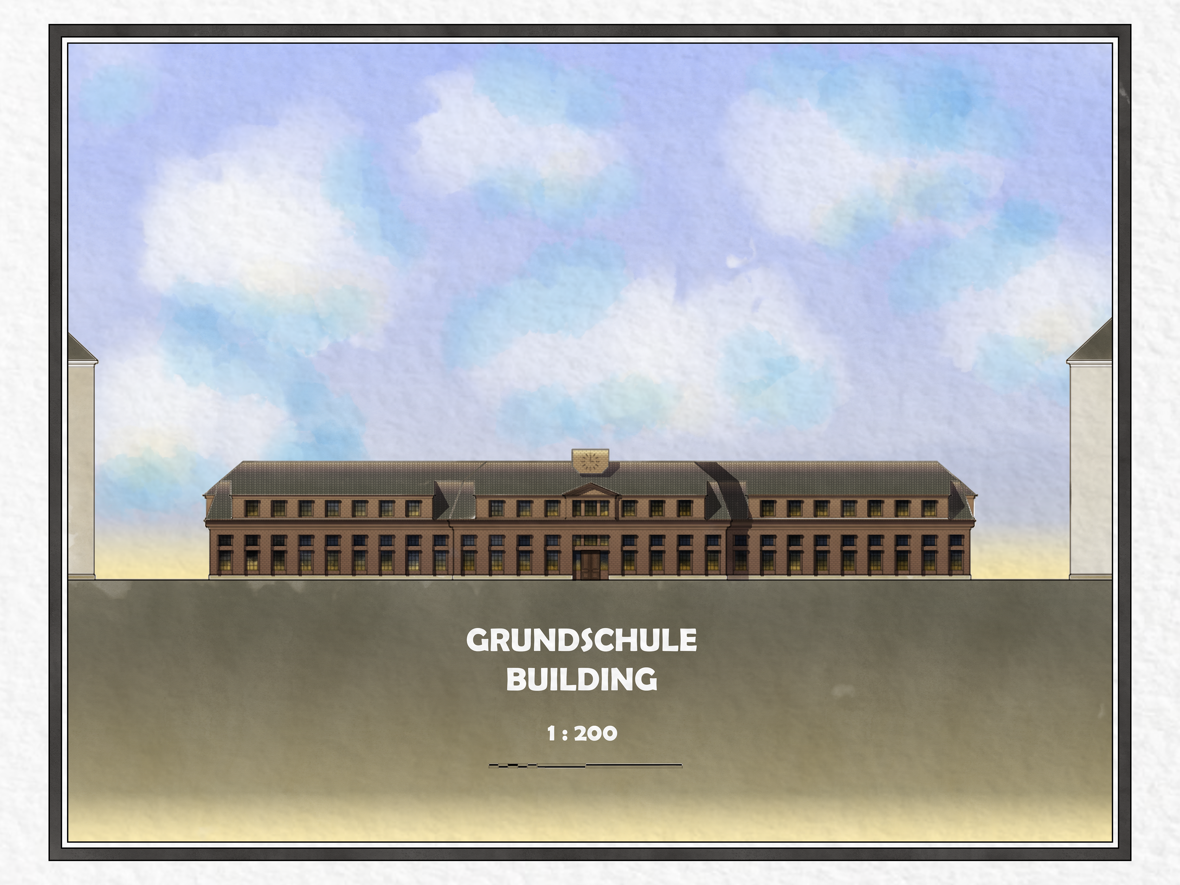 This project was completed in Fall of 2022. This school complex was designed in the German Expressionist style, inspired by architects such as Ludwig Hoffman and Fritz Schumacher.